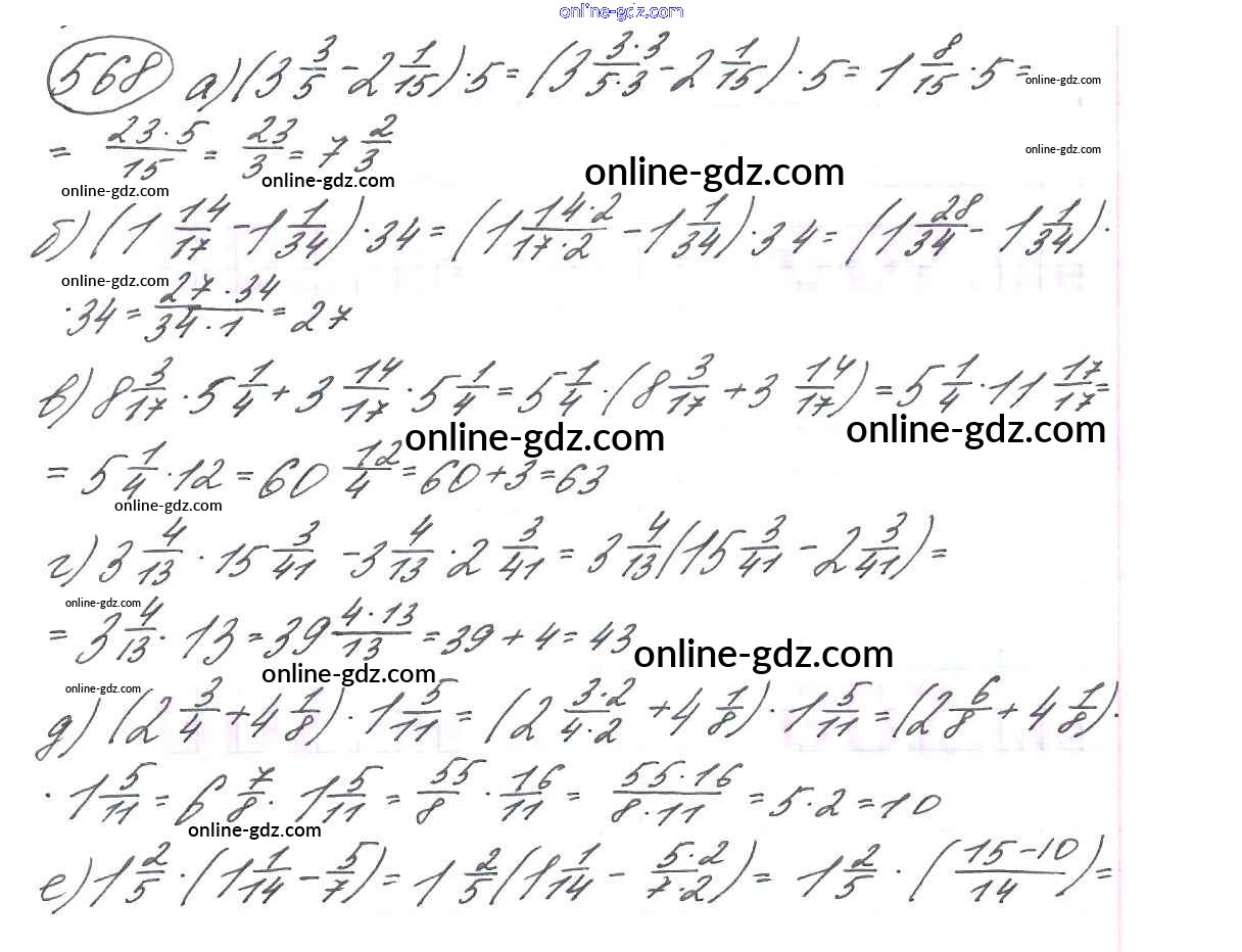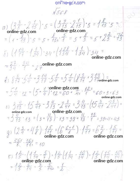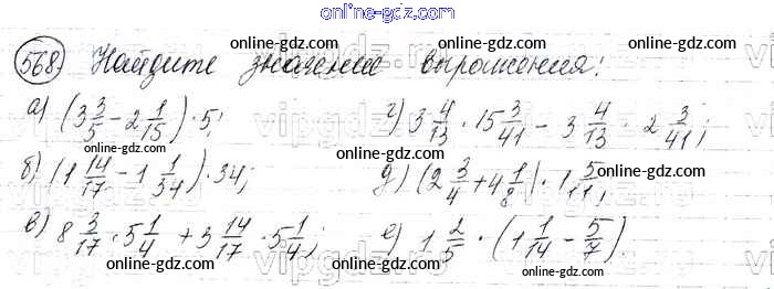 Готовые домашние задания по Математике за 6 класс Учебник Виленкин, Жохов 2014 - §3. Умножение и деление обыкновенных дробей Глава 1 568