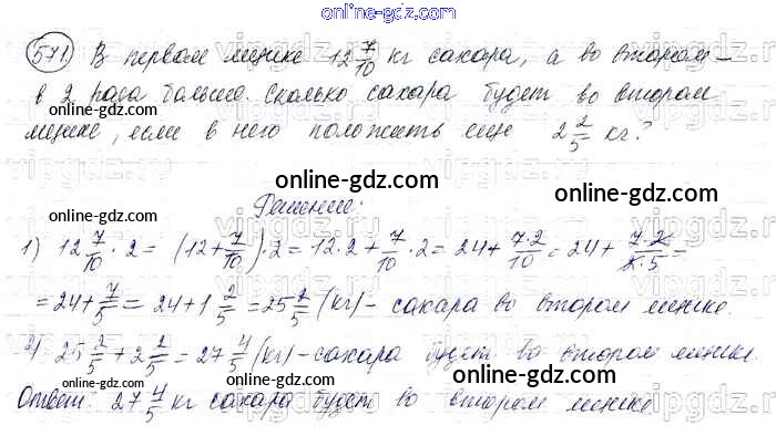 Готовые домашние задания по Математике за 6 класс Учебник Виленкин, Жохов 2014 - §3. Умножение и деление обыкновенных дробей Глава 1 571