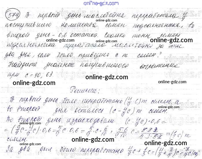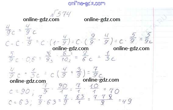 Готовые домашние задания по Математике за 6 класс Учебник Виленкин, Жохов 2014 - §3. Умножение и деление обыкновенных дробей Глава 1 574