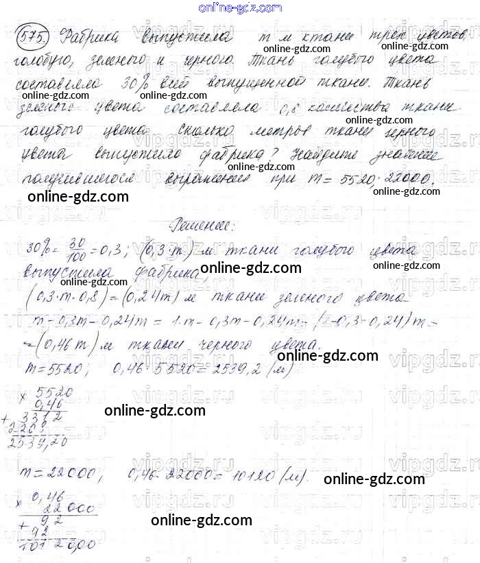 Готовые домашние задания по Математике за 6 класс Учебник Виленкин, Жохов 2014 - §3. Умножение и деление обыкновенных дробей Глава 1 575