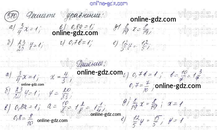 Готовые домашние задания по Математике за 6 класс Учебник Виленкин, Жохов 2014 - §3. Умножение и деление обыкновенных дробей Глава 1 580