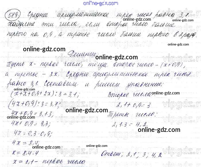 Готовые домашние задания по Математике за 6 класс Учебник Виленкин, Жохов 2014 - §3. Умножение и деление обыкновенных дробей Глава 1 589