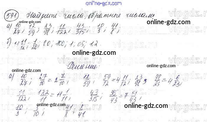 Готовые домашние задания по Математике за 6 класс Учебник Виленкин, Жохов 2014 - §3. Умножение и деление обыкновенных дробей Глава 1 591