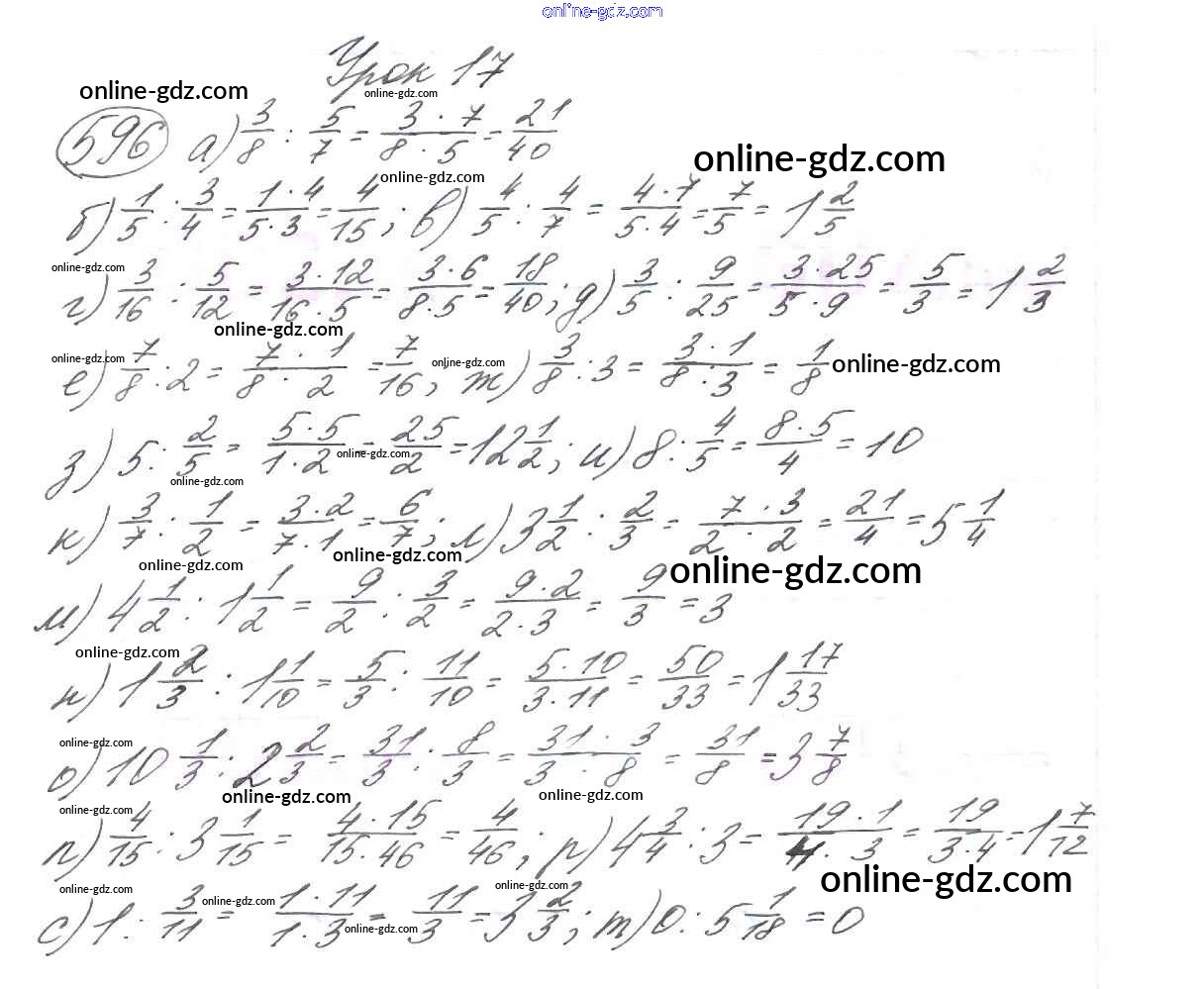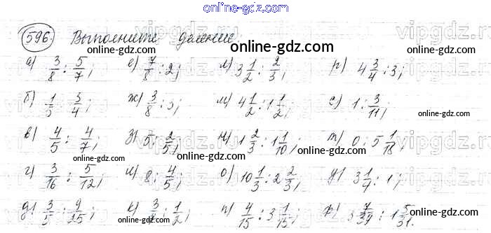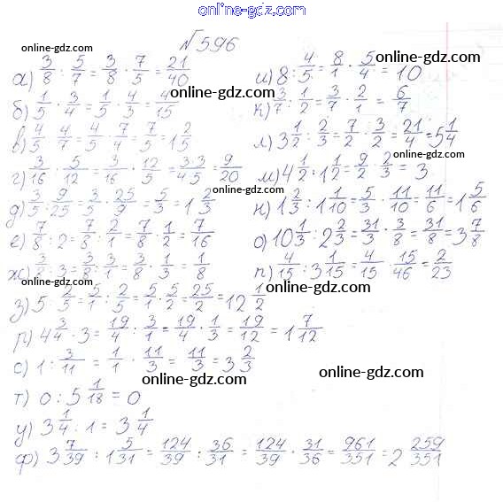 Готовые домашние задания по Математике за 6 класс Учебник Виленкин, Жохов 2014 - §3. Умножение и деление обыкновенных дробей Глава 1 596