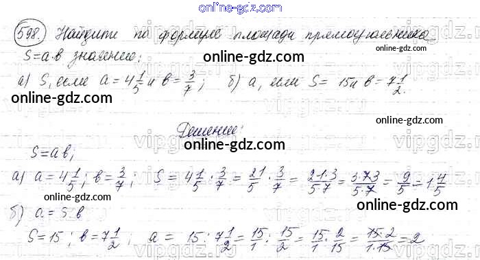 Готовые домашние задания по Математике за 6 класс Учебник Виленкин, Жохов 2014 - §3. Умножение и деление обыкновенных дробей Глава 1 598