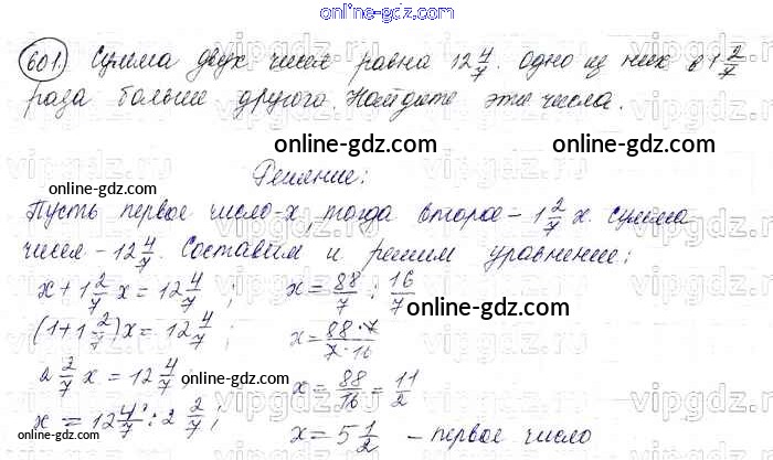 Готовые домашние задания по Математике за 6 класс Учебник Виленкин, Жохов 2014 - §3. Умножение и деление обыкновенных дробей Глава 1 601