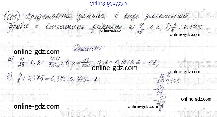 Готовые домашние задания по Математике за 6 класс Учебник Виленкин, Жохов 2014 - §3. Умножение и деление обыкновенных дробей Глава 1 606