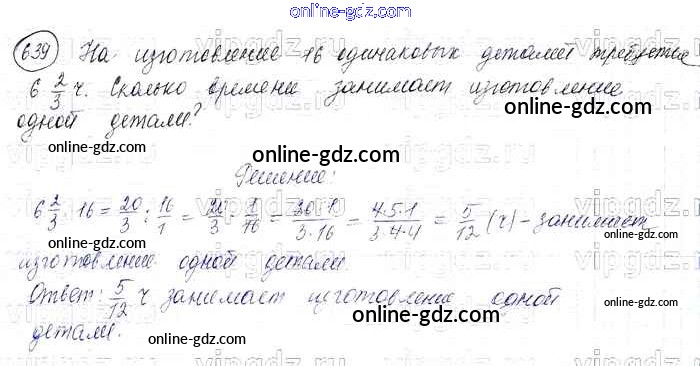 Готовые домашние задания по Математике за 6 класс Учебник Виленкин, Жохов 2014 - §3. Умножение и деление обыкновенных дробей Глава 1 639