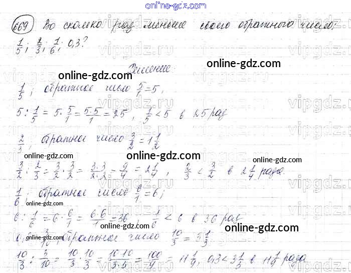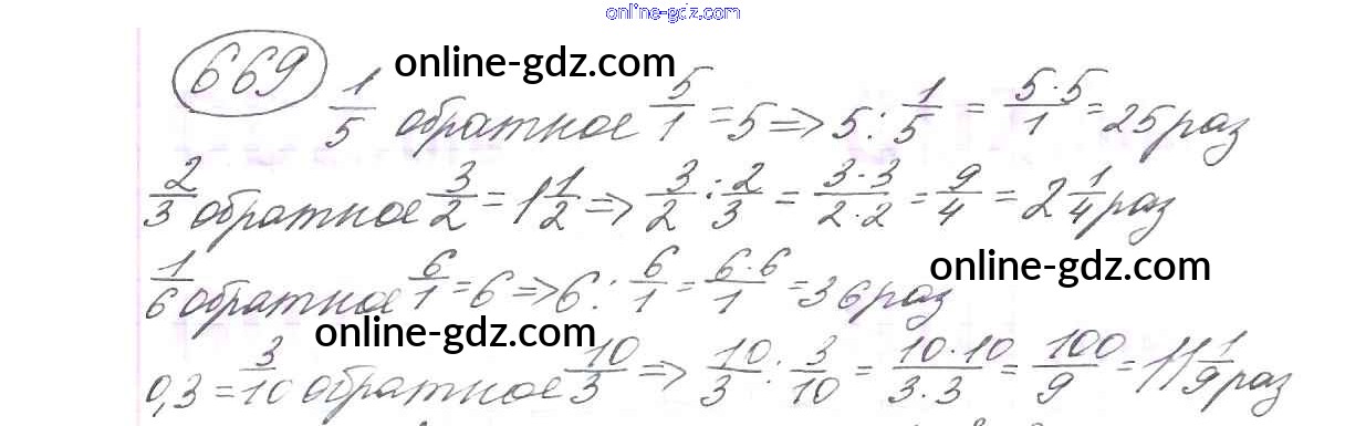 Готовые домашние задания по Математике за 6 класс Учебник Виленкин, Жохов 2014 - §3. Умножение и деление обыкновенных дробей Глава 1 669