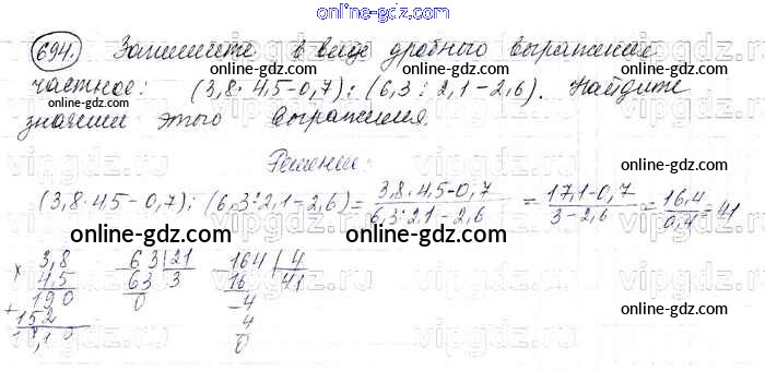 Готовые домашние задания по Математике за 6 класс Учебник Виленкин, Жохов 2014 - §3. Умножение и деление обыкновенных дробей Глава 1 694