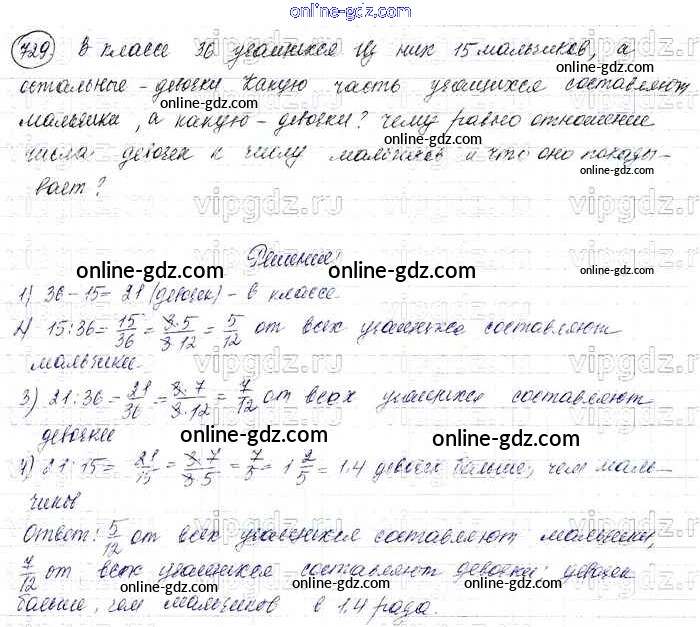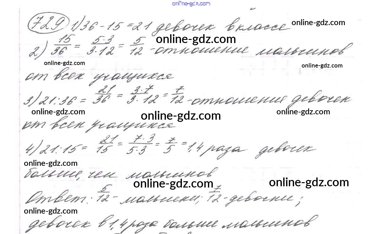 Готовые домашние задания по Математике за 6 класс Учебник Виленкин, Жохов 2014 - §4. Отношения и пропорции Глава 1 729