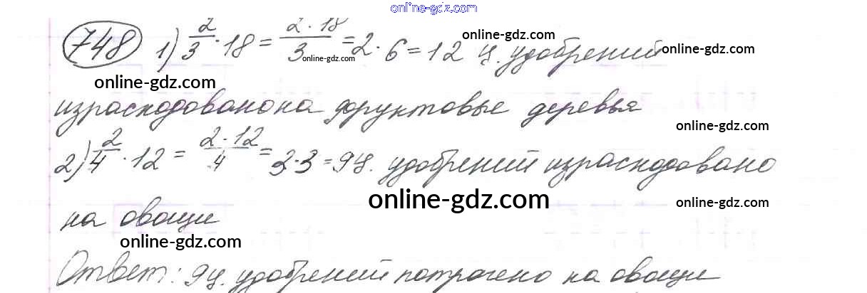 Готовые домашние задания по Математике за 6 класс Учебник Виленкин, Жохов 2014 - §4. Отношения и пропорции Глава 1 748