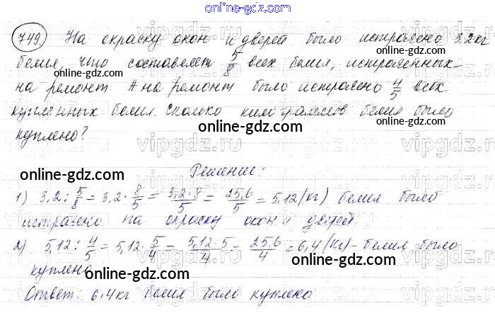Готовые домашние задания по Математике за 6 класс Учебник Виленкин, Жохов 2014 - §4. Отношения и пропорции Глава 1 749