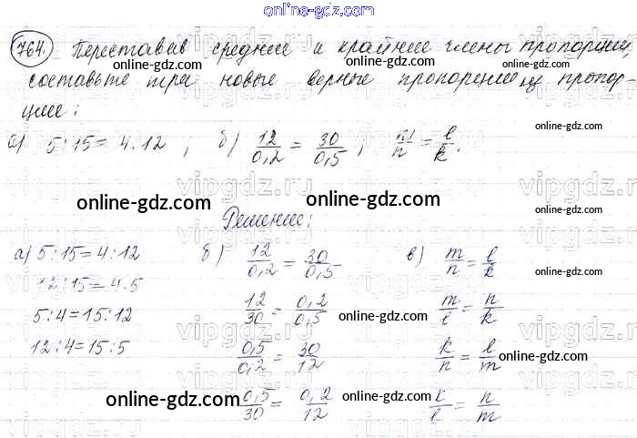 Готовые домашние задания по Математике за 6 класс Учебник Виленкин, Жохов 2014 - §4. Отношения и пропорции Глава 1 764