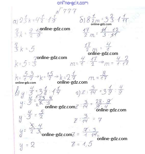 Готовые домашние задания по Математике за 6 класс Учебник Виленкин, Жохов 2014 - §4. Отношения и пропорции Глава 1 777