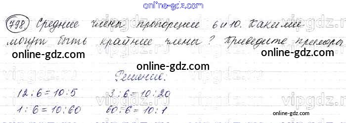 Готовые домашние задания по Математике за 6 класс Учебник Виленкин, Жохов 2014 - §4. Отношения и пропорции Глава 1 798