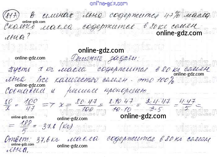 Готовые домашние задания по Математике за 6 класс Учебник Виленкин, Жохов 2014 - §4. Отношения и пропорции Глава 1 817