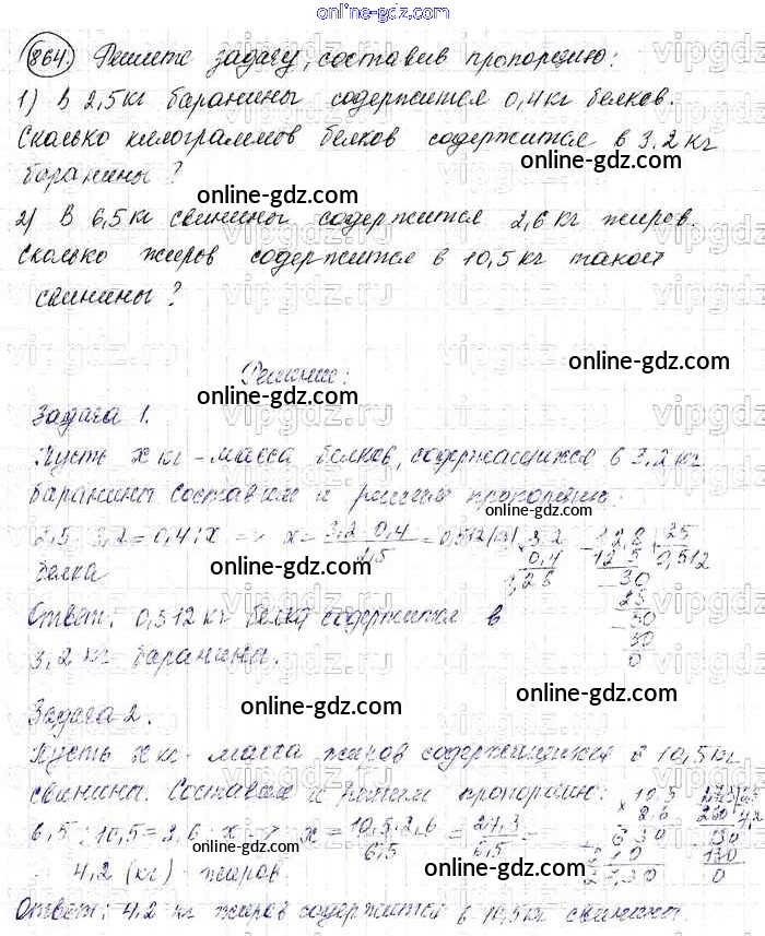 Готовые домашние задания по Математике за 6 класс Учебник Виленкин, Жохов 2014 - §4. Отношения и пропорции Глава 1 864