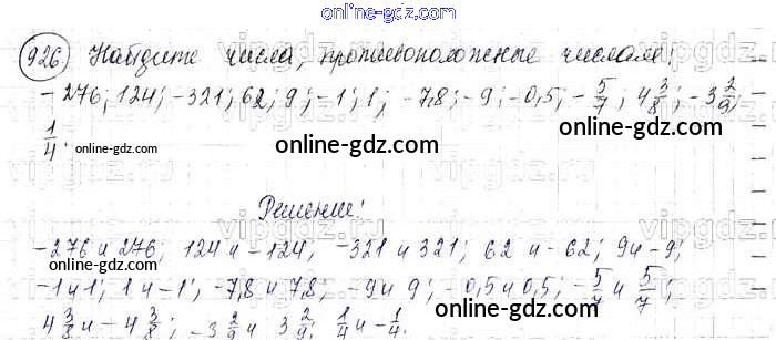 Готовые домашние задания по Математике за 6 класс Учебник Виленкин, Жохов 2014 - §5. Положительные и отрицательные числа Глава 2 926