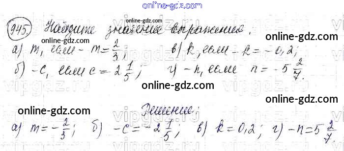 Готовые домашние задания по Математике за 6 класс Учебник Виленкин, Жохов 2014 - §5. Положительные и отрицательные числа Глава 2 945
