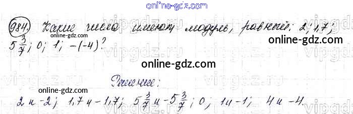 Готовые домашние задания по Математике за 6 класс Учебник Виленкин, Жохов 2014 - §5. Положительные и отрицательные числа Глава 2 984