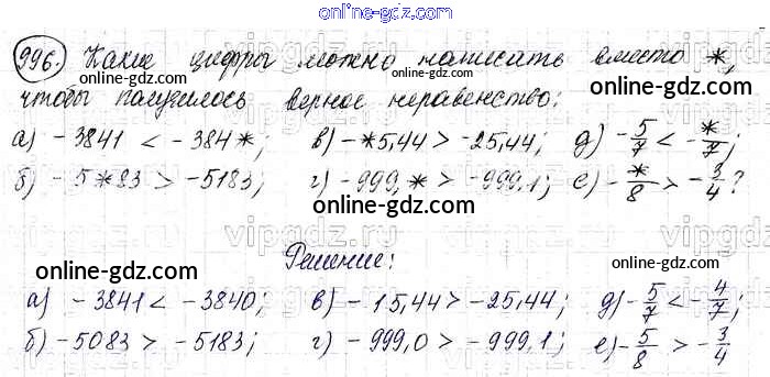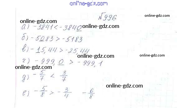 Готовые домашние задания по Математике за 6 класс Учебник Виленкин, Жохов 2014 - §5. Положительные и отрицательные числа Глава 2 996