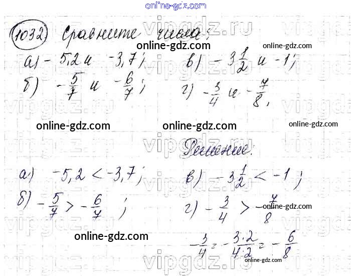Готовые домашние задания по Математике за 6 класс Учебник Виленкин, Жохов 2014 - §6. Сложение и вычитание положительных и отрицательных чисел Глава 2 1032