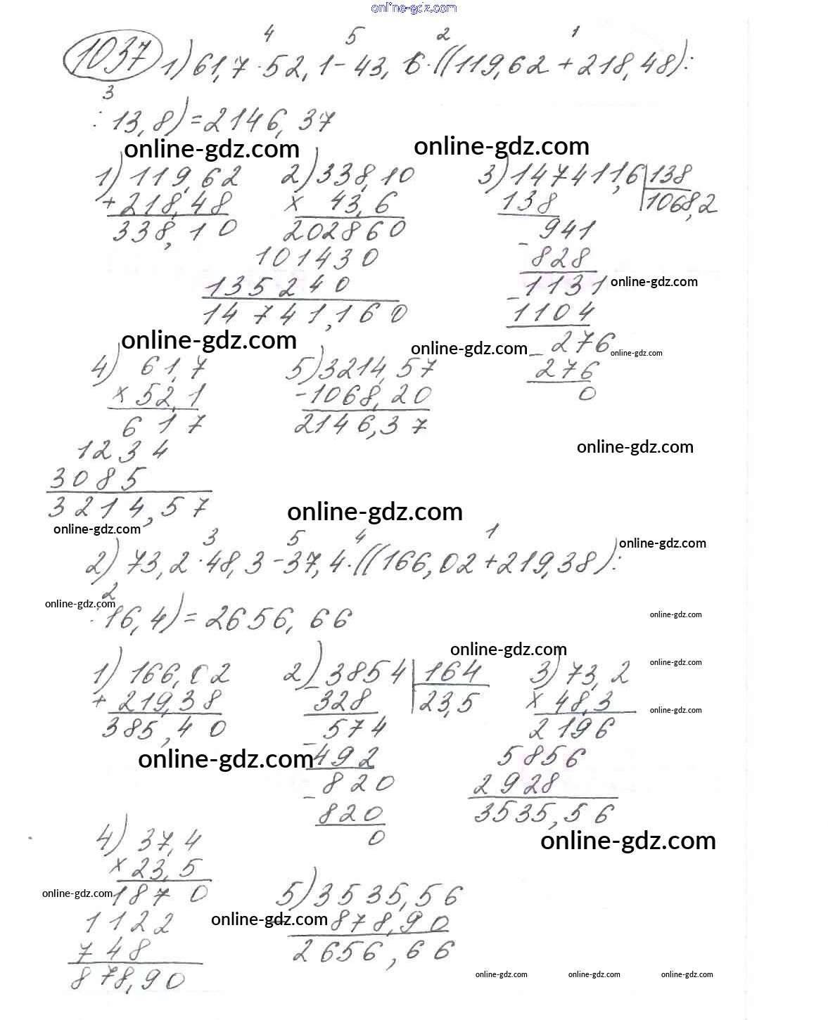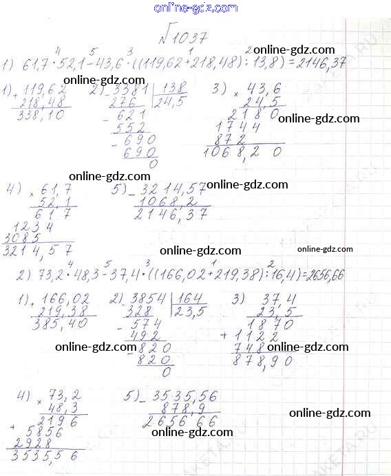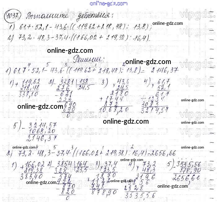 Готовые домашние задания по Математике за 6 класс Учебник Виленкин, Жохов 2014 - §6. Сложение и вычитание положительных и отрицательных чисел Глава 2 1037