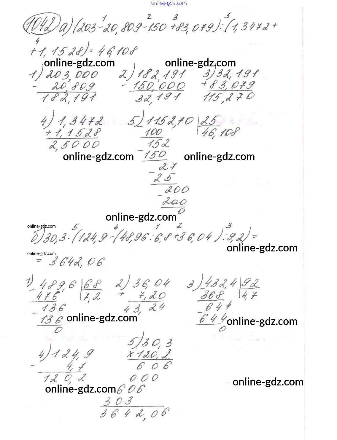 Готовые домашние задания по Математике за 6 класс Учебник Виленкин, Жохов 2014 - §6. Сложение и вычитание положительных и отрицательных чисел Глава 2 1042
