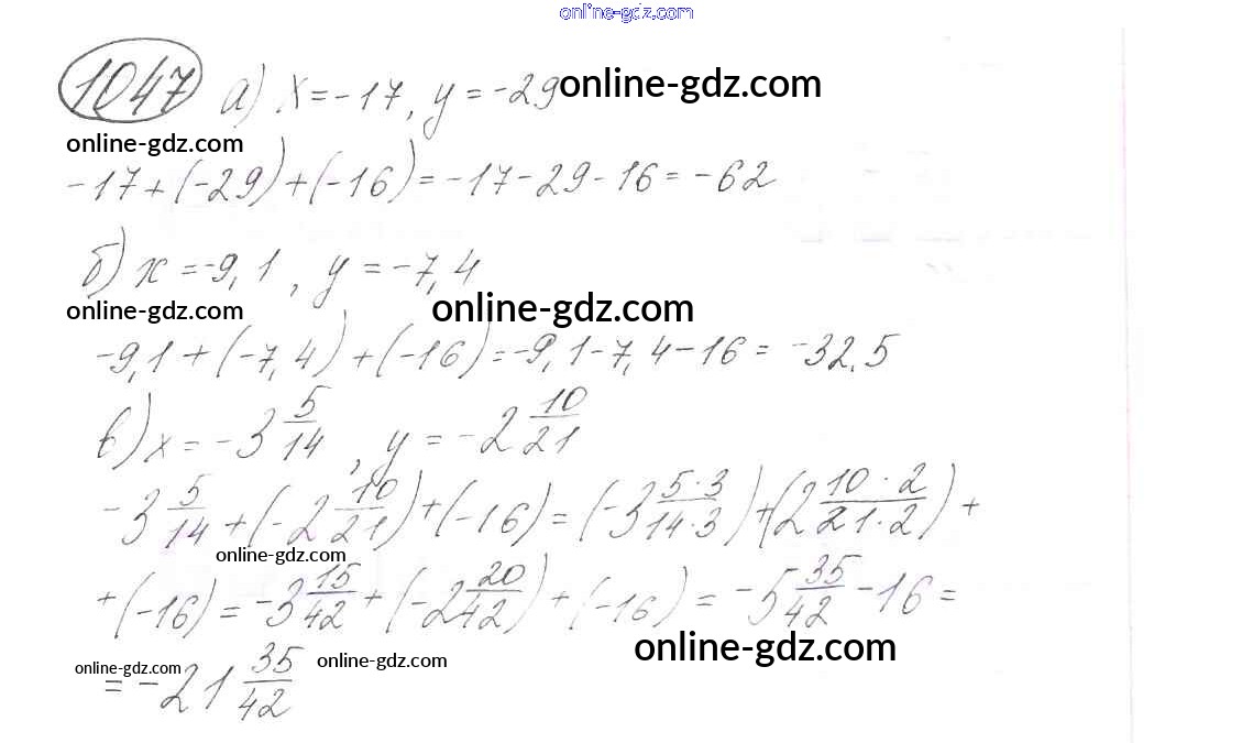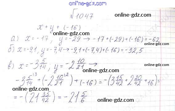 Готовые домашние задания по Математике за 6 класс Учебник Виленкин, Жохов 2014 - §6. Сложение и вычитание положительных и отрицательных чисел Глава 2 1047