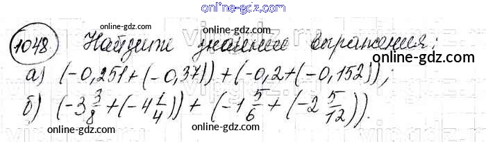 Готовые домашние задания по Математике за 6 класс Учебник Виленкин, Жохов 2014 - §6. Сложение и вычитание положительных и отрицательных чисел Глава 2 1048