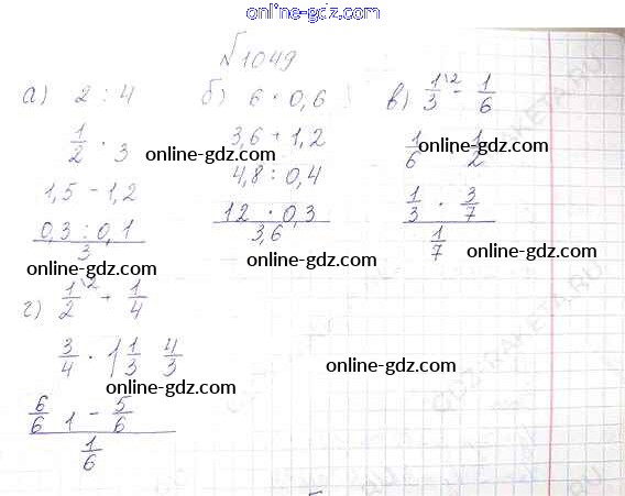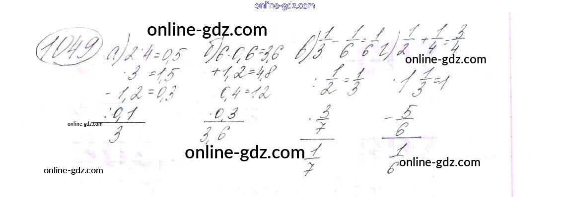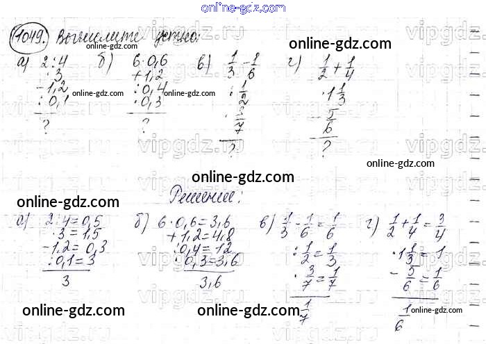 Готовые домашние задания по Математике за 6 класс Учебник Виленкин, Жохов 2014 - §6. Сложение и вычитание положительных и отрицательных чисел Глава 2 1049
