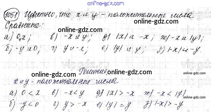 Готовые домашние задания по Математике за 6 класс Учебник Виленкин, Жохов 2014 - §6. Сложение и вычитание положительных и отрицательных чисел Глава 2 1051