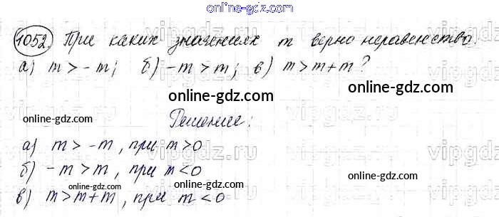 Готовые домашние задания по Математике за 6 класс Учебник Виленкин, Жохов 2014 - §6. Сложение и вычитание положительных и отрицательных чисел Глава 2 1052