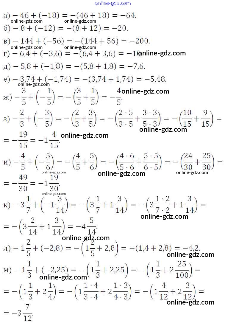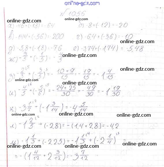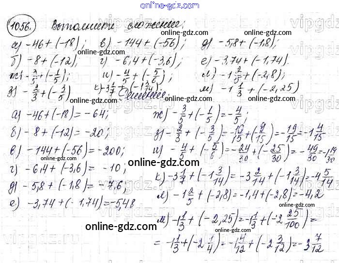 Готовые домашние задания по Математике за 6 класс Учебник Виленкин, Жохов 2014 - §6. Сложение и вычитание положительных и отрицательных чисел Глава 2 1056