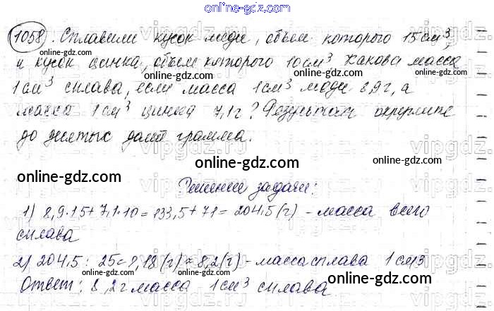 Готовые домашние задания по Математике за 6 класс Учебник Виленкин, Жохов 2014 - §6. Сложение и вычитание положительных и отрицательных чисел Глава 2 1058