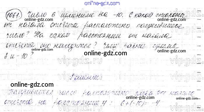 Готовые домашние задания по Математике за 6 класс Учебник Виленкин, Жохов 2014 - §6. Сложение и вычитание положительных и отрицательных чисел Глава 2 1061