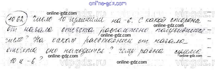 Готовые домашние задания по Математике за 6 класс Учебник Виленкин, Жохов 2014 - §6. Сложение и вычитание положительных и отрицательных чисел Глава 2 1062