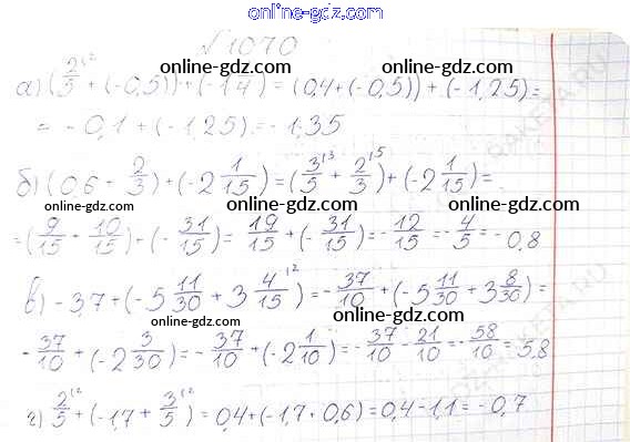 Готовые домашние задания по Математике за 6 класс Учебник Виленкин, Жохов 2014 - §6. Сложение и вычитание положительных и отрицательных чисел Глава 2 1070