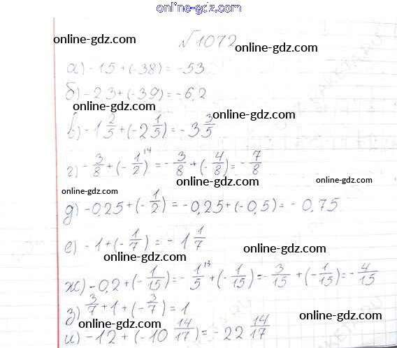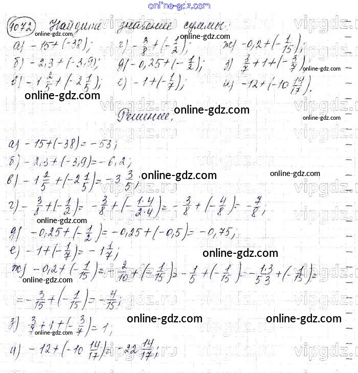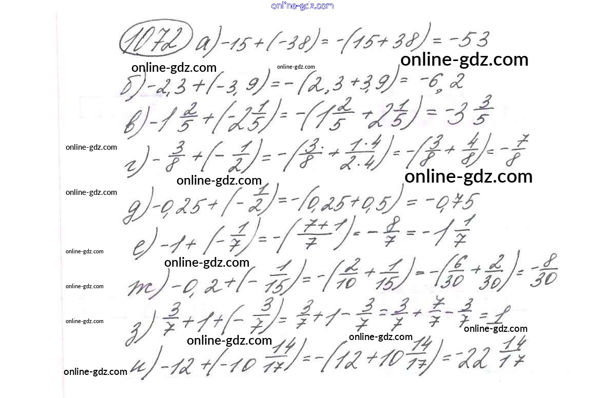 Готовые домашние задания по Математике за 6 класс Учебник Виленкин, Жохов 2014 - §6. Сложение и вычитание положительных и отрицательных чисел Глава 2 1072