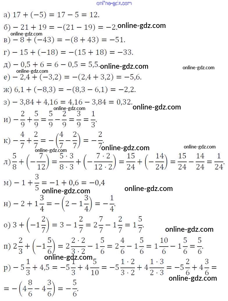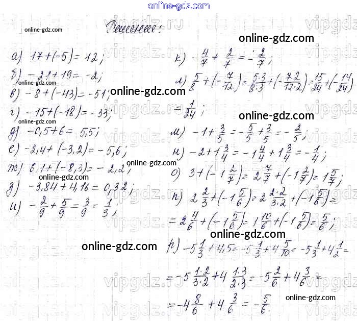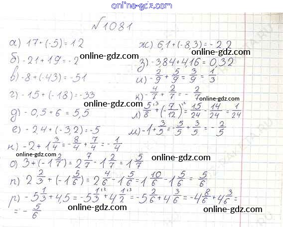 Готовые домашние задания по Математике за 6 класс Учебник Виленкин, Жохов 2014 - §6. Сложение и вычитание положительных и отрицательных чисел Глава 2 1081