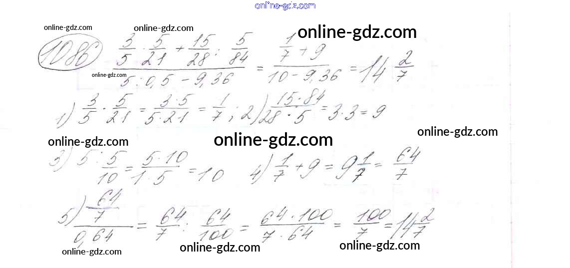 Готовые домашние задания по Математике за 6 класс Учебник Виленкин, Жохов 2014 - §6. Сложение и вычитание положительных и отрицательных чисел Глава 2 1086