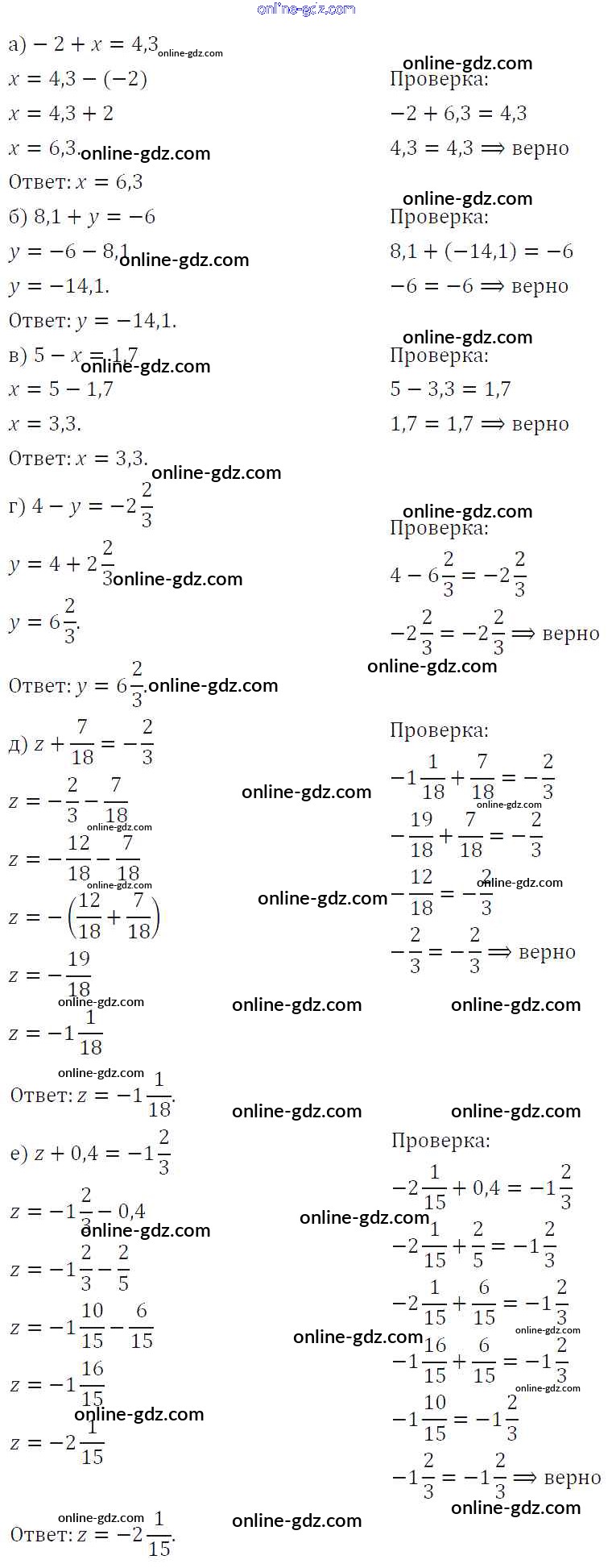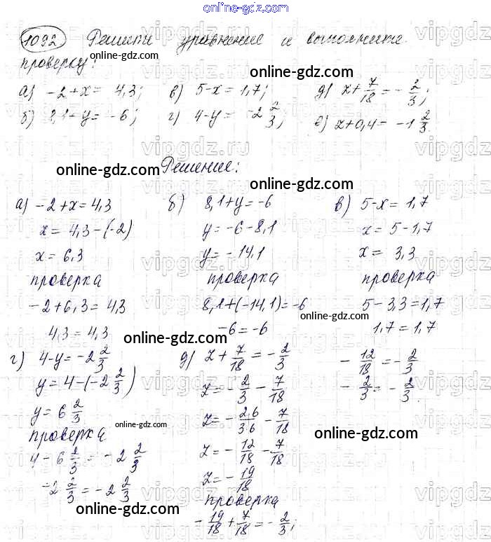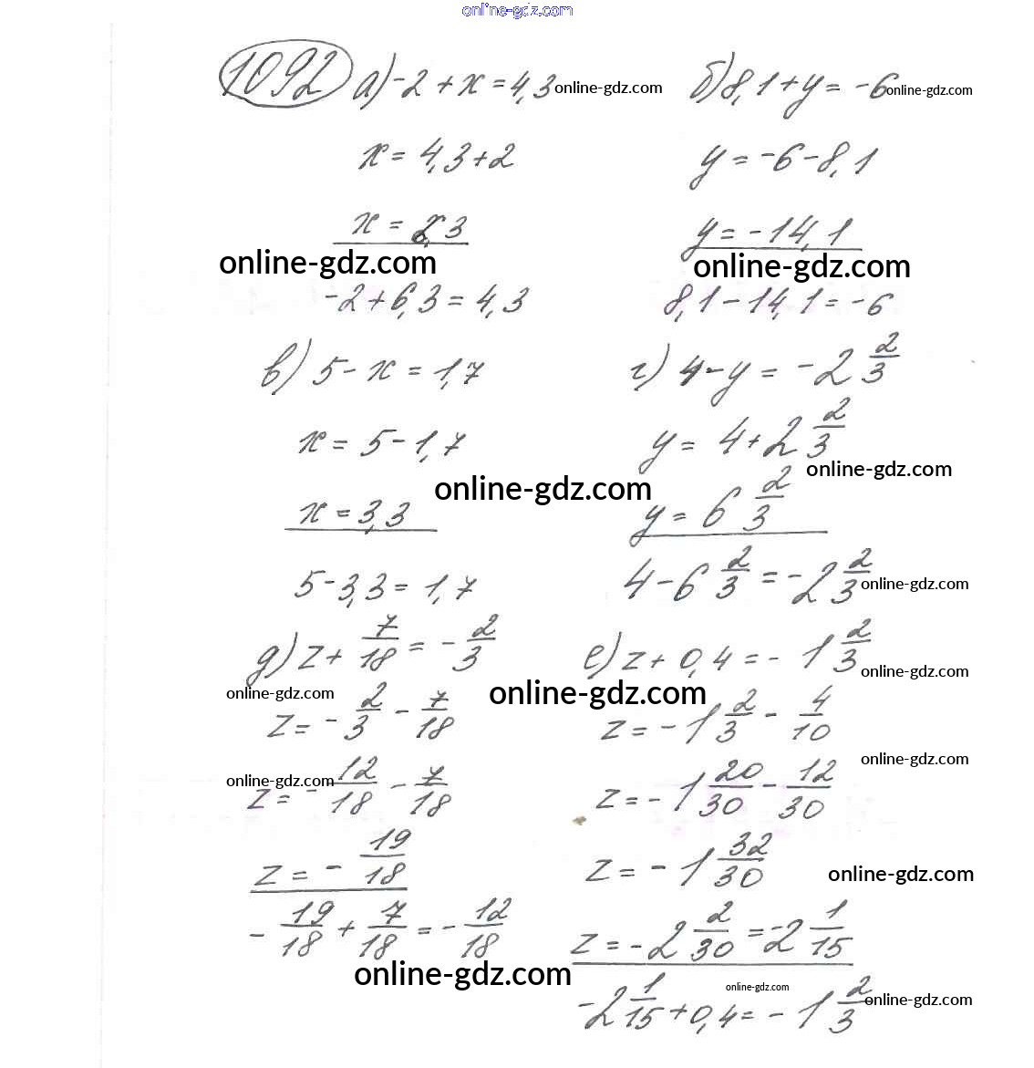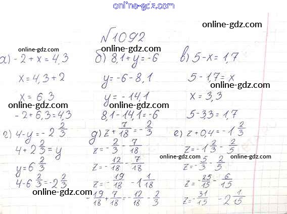 Готовые домашние задания по Математике за 6 класс Учебник Виленкин, Жохов 2014 - §6. Сложение и вычитание положительных и отрицательных чисел Глава 2 1092
