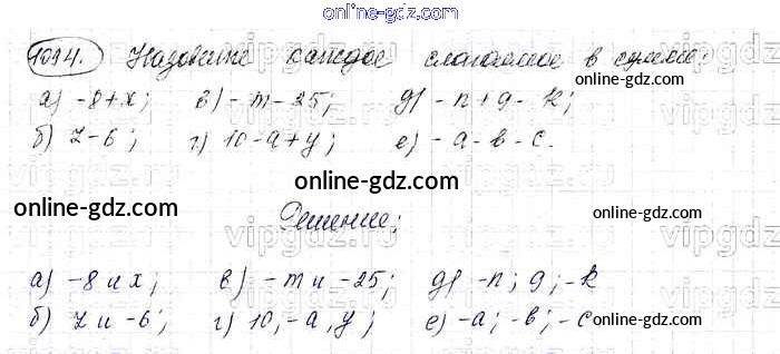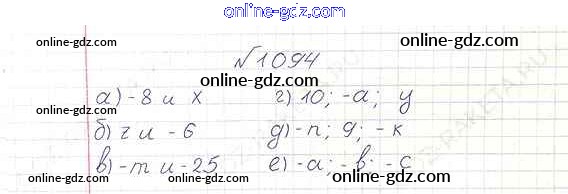 Готовые домашние задания по Математике за 6 класс Учебник Виленкин, Жохов 2014 - §6. Сложение и вычитание положительных и отрицательных чисел Глава 2 1094