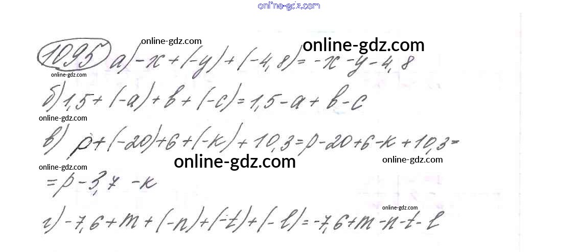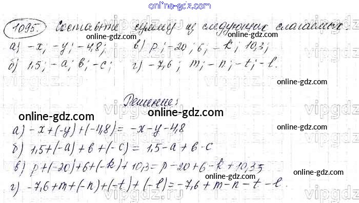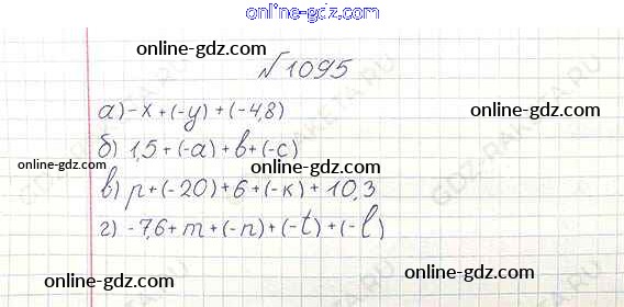Готовые домашние задания по Математике за 6 класс Учебник Виленкин, Жохов 2014 - §6. Сложение и вычитание положительных и отрицательных чисел Глава 2 1095