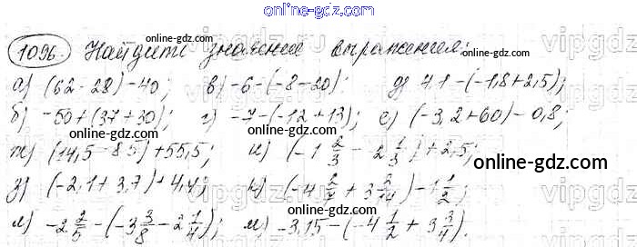 Готовые домашние задания по Математике за 6 класс Учебник Виленкин, Жохов 2014 - §6. Сложение и вычитание положительных и отрицательных чисел Глава 2 1096
