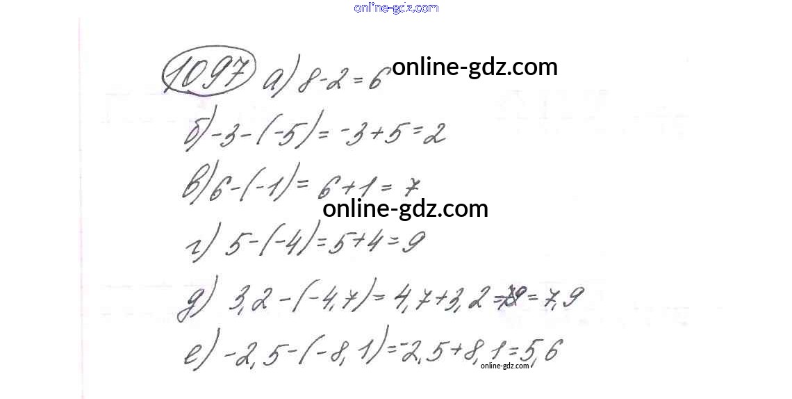 Готовые домашние задания по Математике за 6 класс Учебник Виленкин, Жохов 2014 - §6. Сложение и вычитание положительных и отрицательных чисел Глава 2 1097