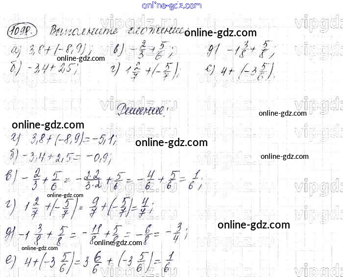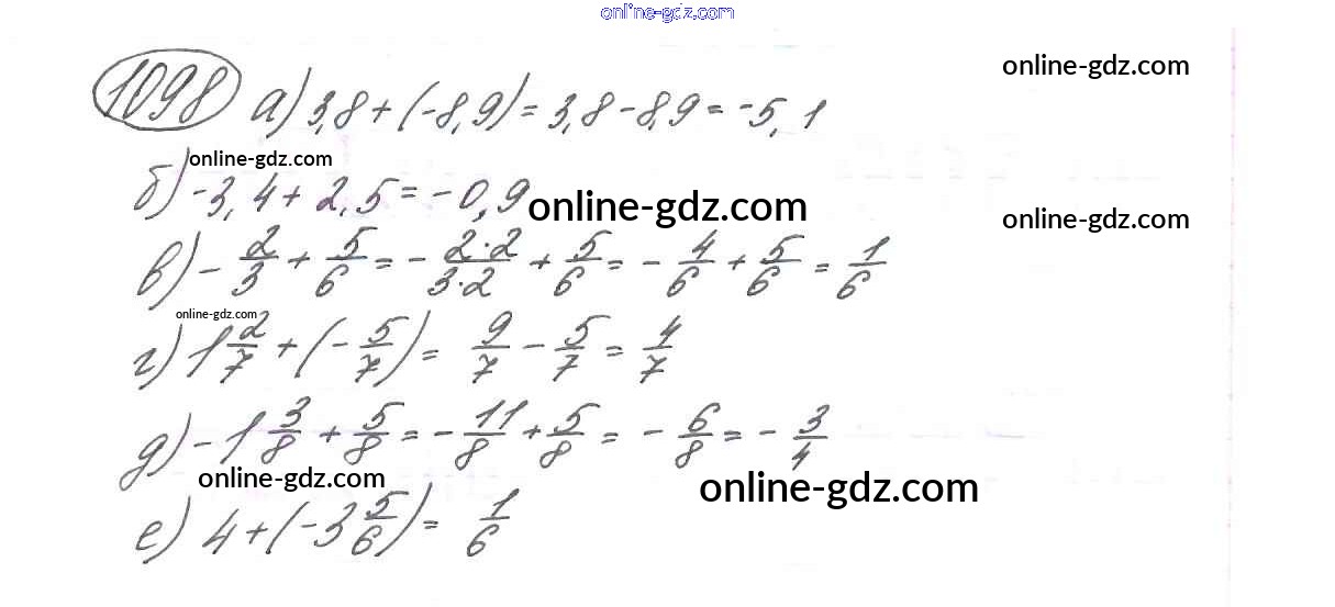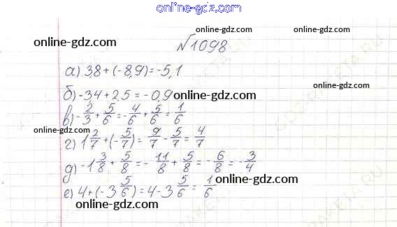 Готовые домашние задания по Математике за 6 класс Учебник Виленкин, Жохов 2014 - §6. Сложение и вычитание положительных и отрицательных чисел Глава 2 1098