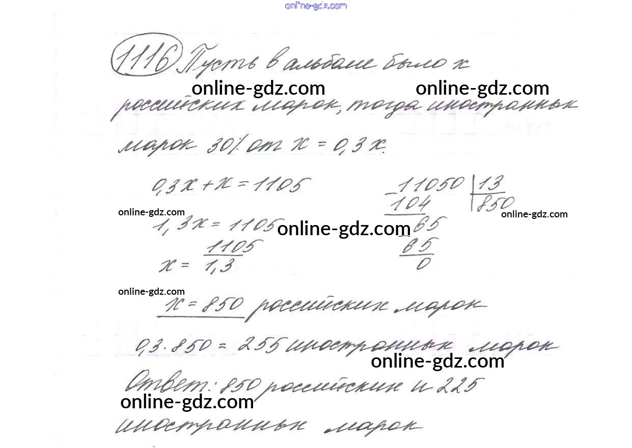 Готовые домашние задания по Математике за 6 класс Учебник Виленкин, Жохов 2014 - §6. Сложение и вычитание положительных и отрицательных чисел Глава 2 1116