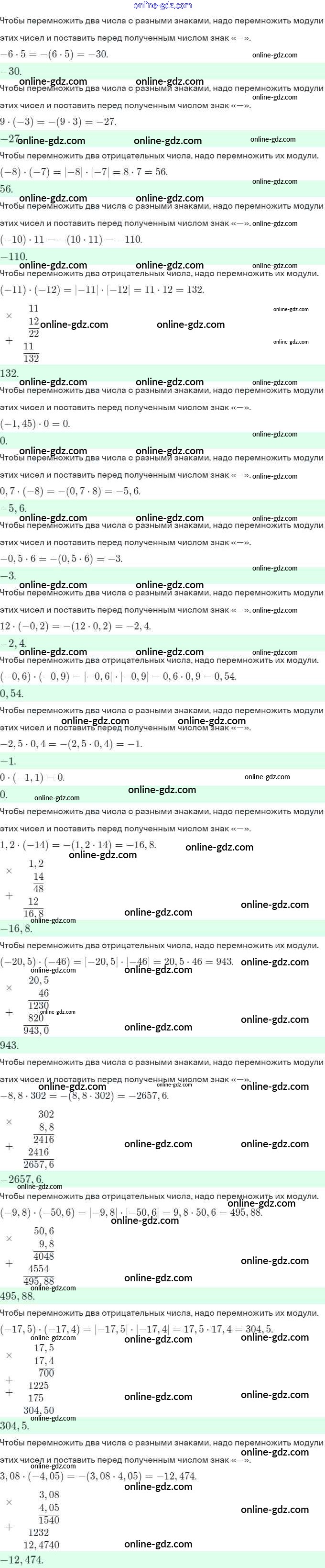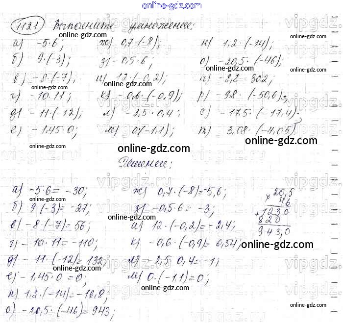 Готовые домашние задания по Математике за 6 класс Учебник Виленкин, Жохов 2014 - §7. Умножение и деление положительных и отрицательных чисел Глава 2 1121